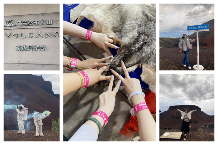 告別錫林浩特,車隊駛向烏蘭察布。此行的一大亮點,是探訪了壯觀的烏蘭哈達火山地質公園!重點打卡了著名的六號火山(南煉丹爐)。這座獨特的火山因其開采形成的巨大礦坑和裸露的奇特黑色火山巖而聞名,猶如月球表面般荒涼而震撼。伙伴們沿著步道攀登,近距離感受著億萬年前地質運動的磅礴力量,獨特的景觀帶來了強烈的視覺沖擊和科幻感,成為了此行難忘的網紅打卡地。